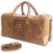 Full grain leather weekend travel bag with shoulder strap-Brown